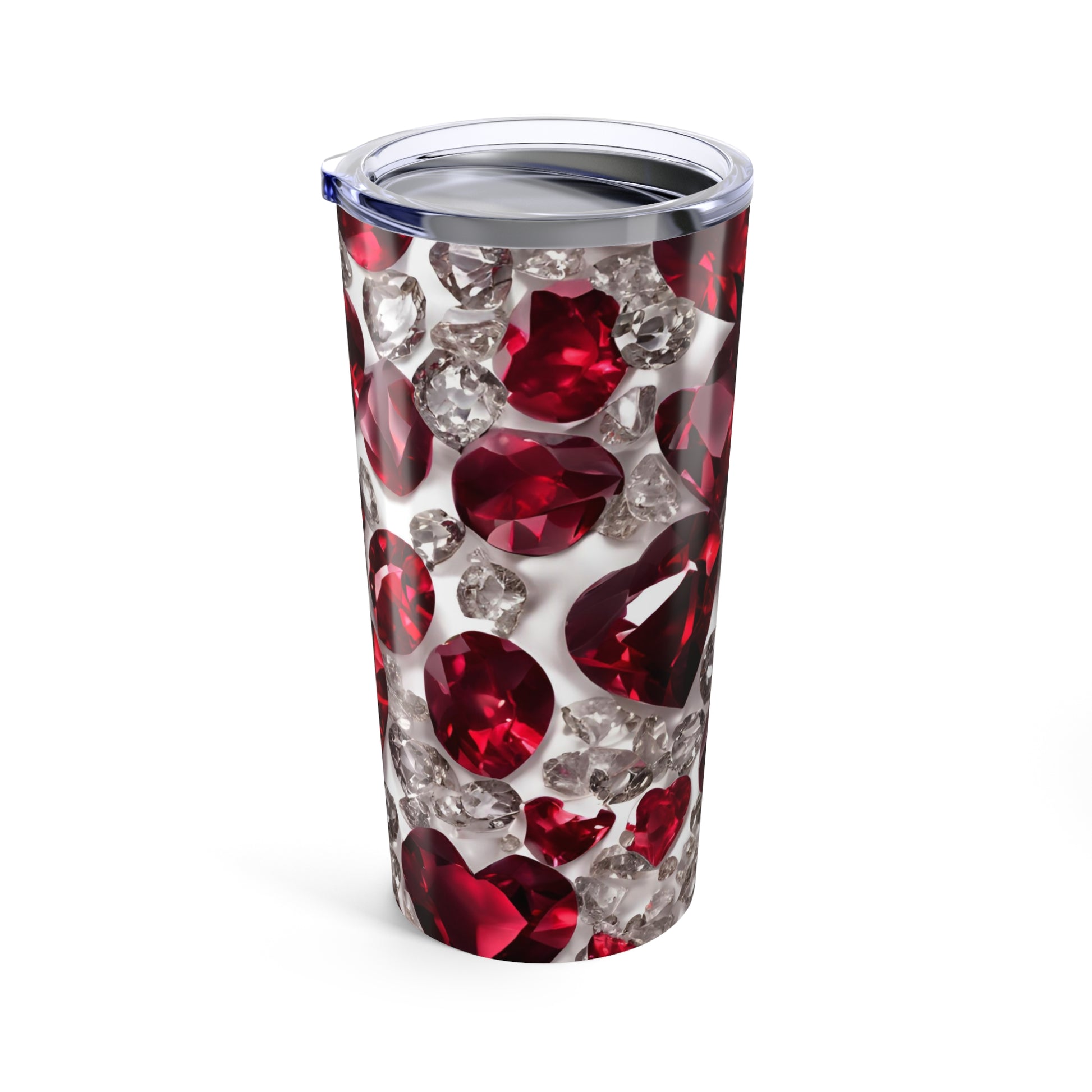 Ruby and Diamond Hearts Tumbler Valentine's Gift for Her Love Friendship Gift Tumbler Gemstone Lover Rhinestone Crystal Design Tumbler