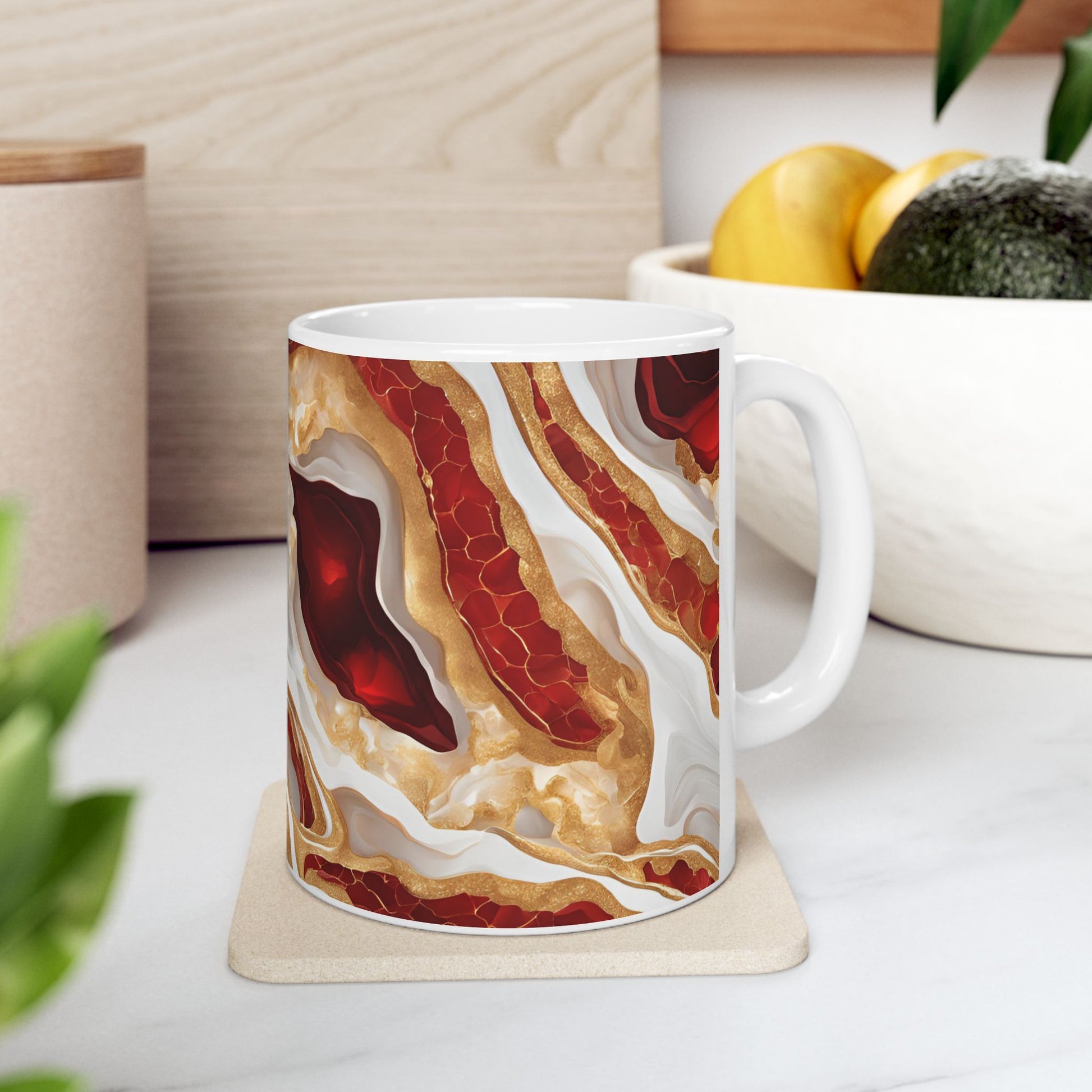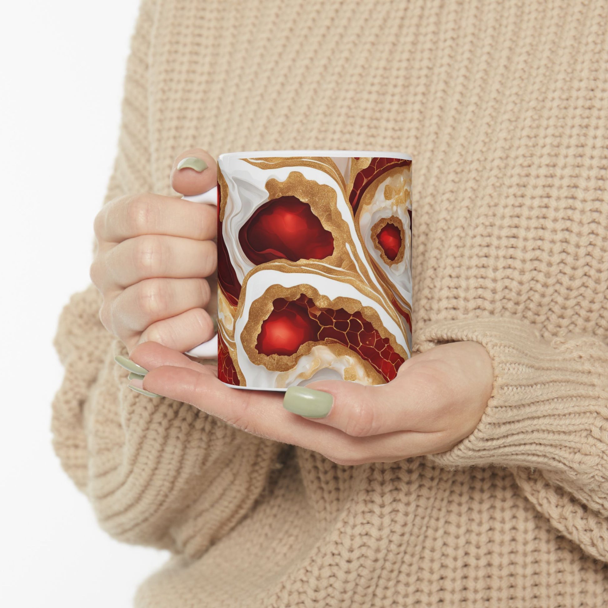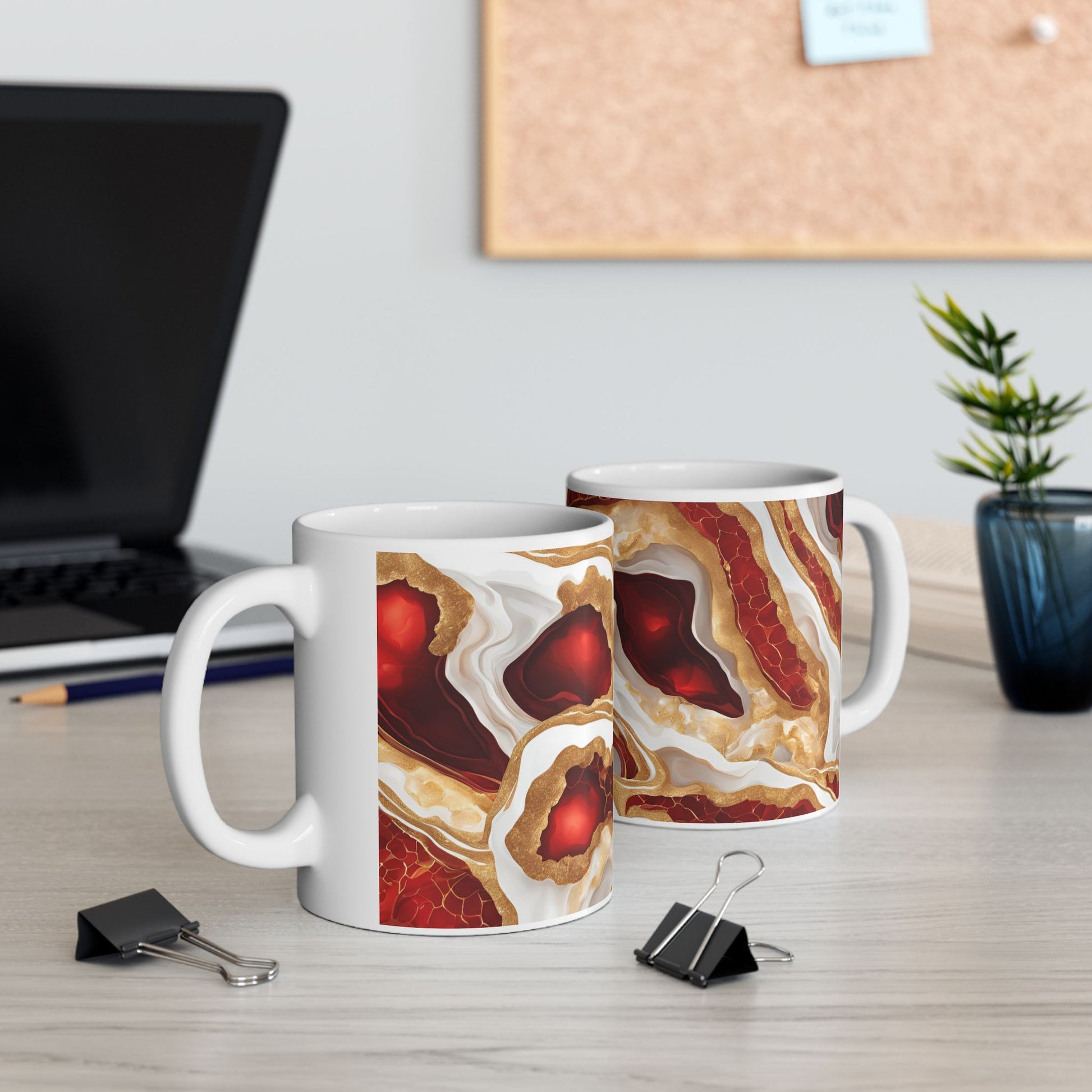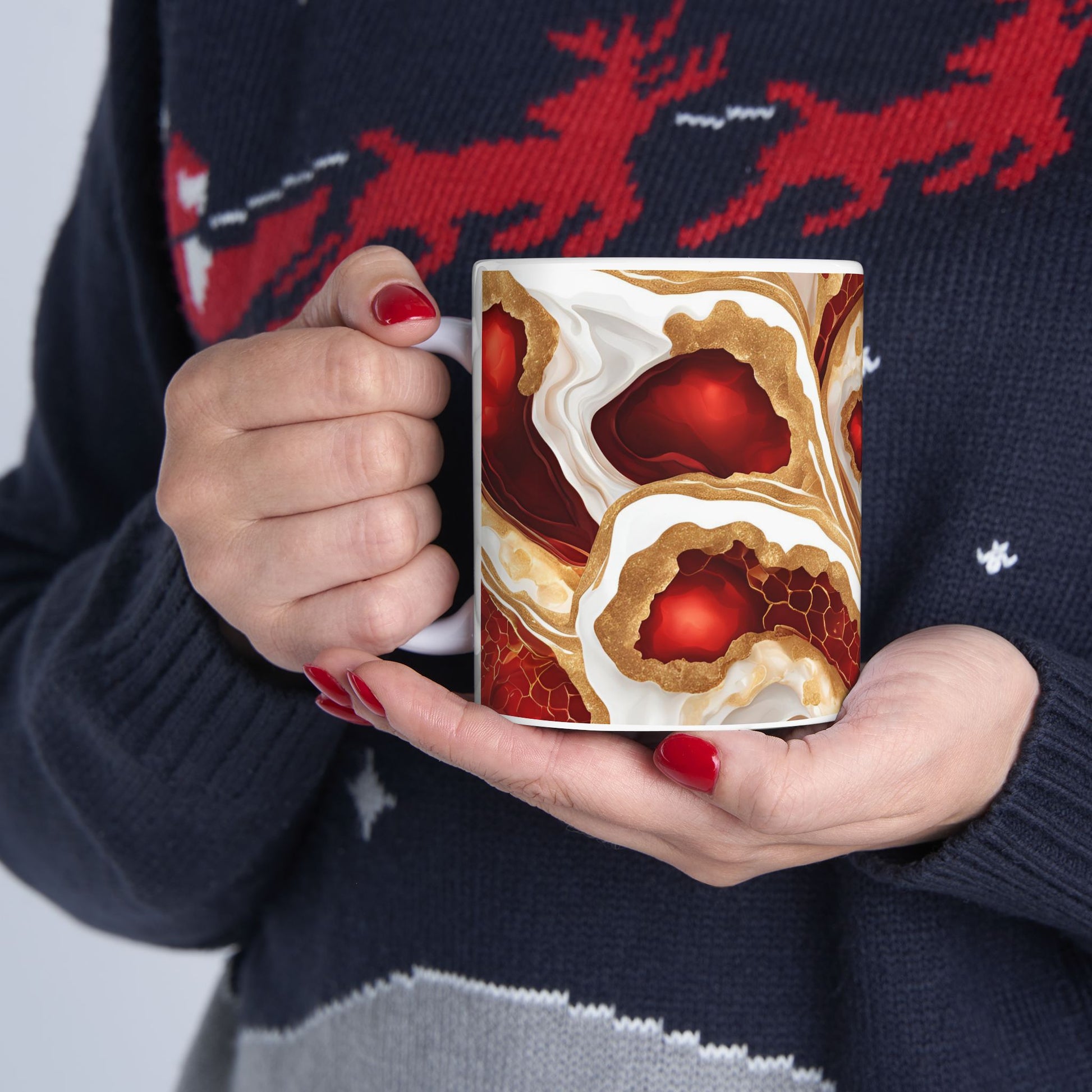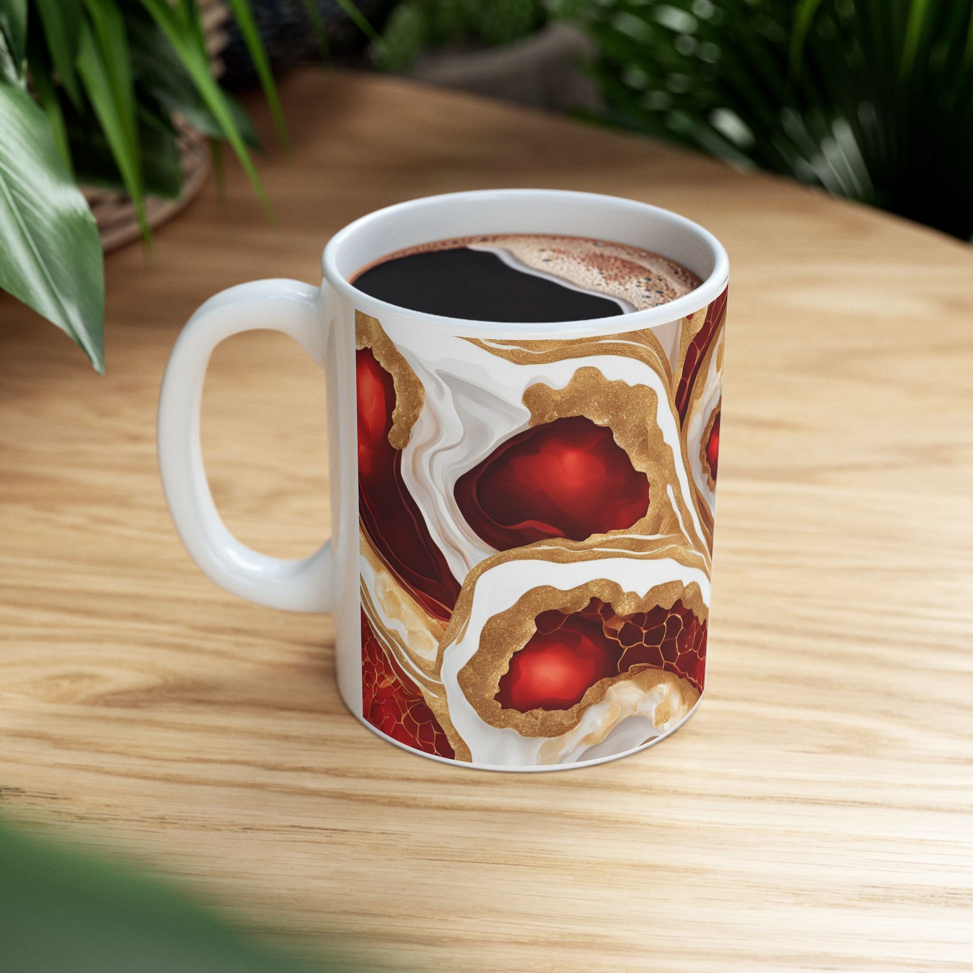 Ruby Red and White Crystal Geode Design Coffee Tea Hot Chocolate Mug Valentine's Day Gift for Nature Lover Gift Geology Marble Rock Lover