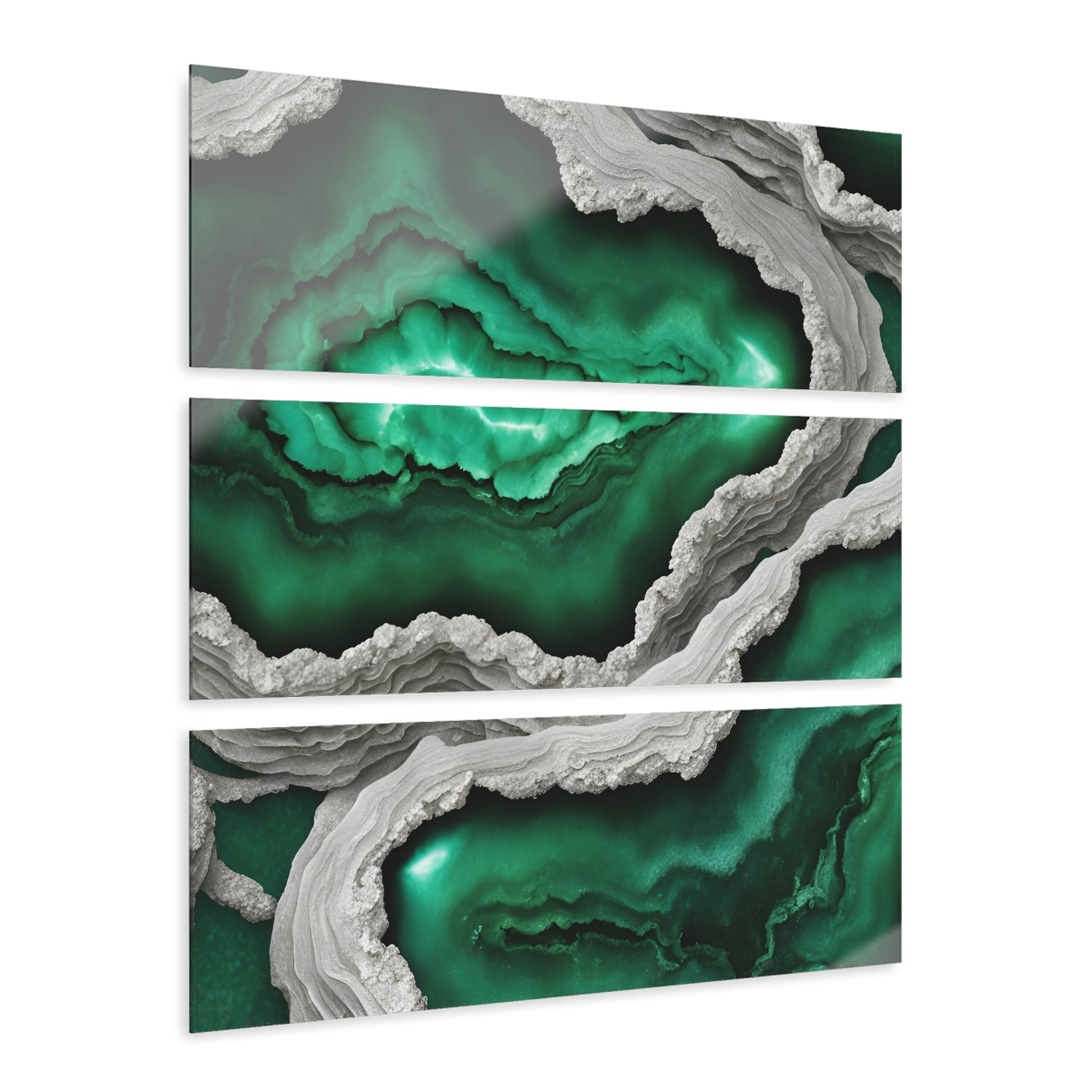Stunning Green Amethyst Geode Design Triptych Acrylic Print Wall Art Nature Lover Gift Geology Rock Lover Gift Agate Design