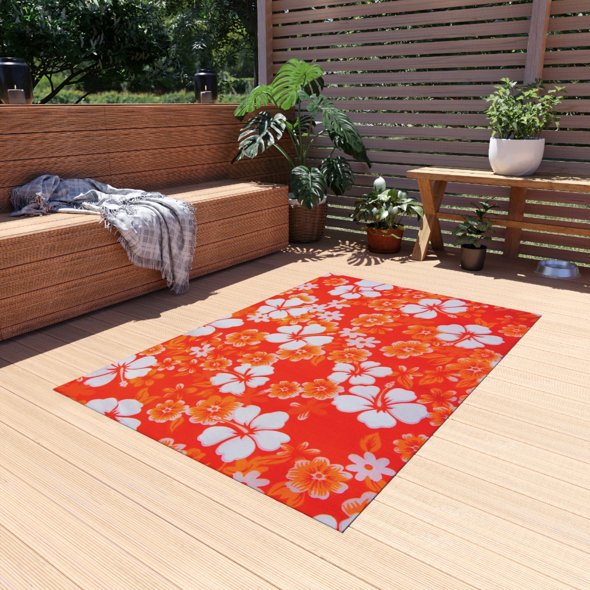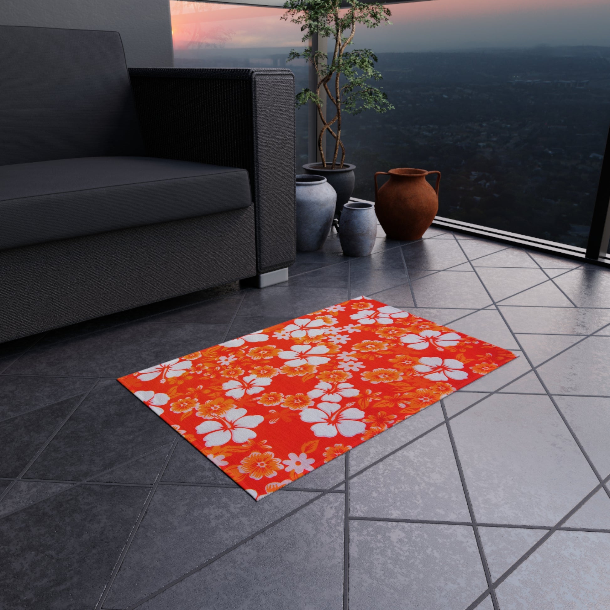 Tropical Chenille Outdoor Rug with No-Skid Backing Cozy Outdoor Carpet Patio Decor Hawaiian Floral Beachy Gazebo Rug Pool Area Decor