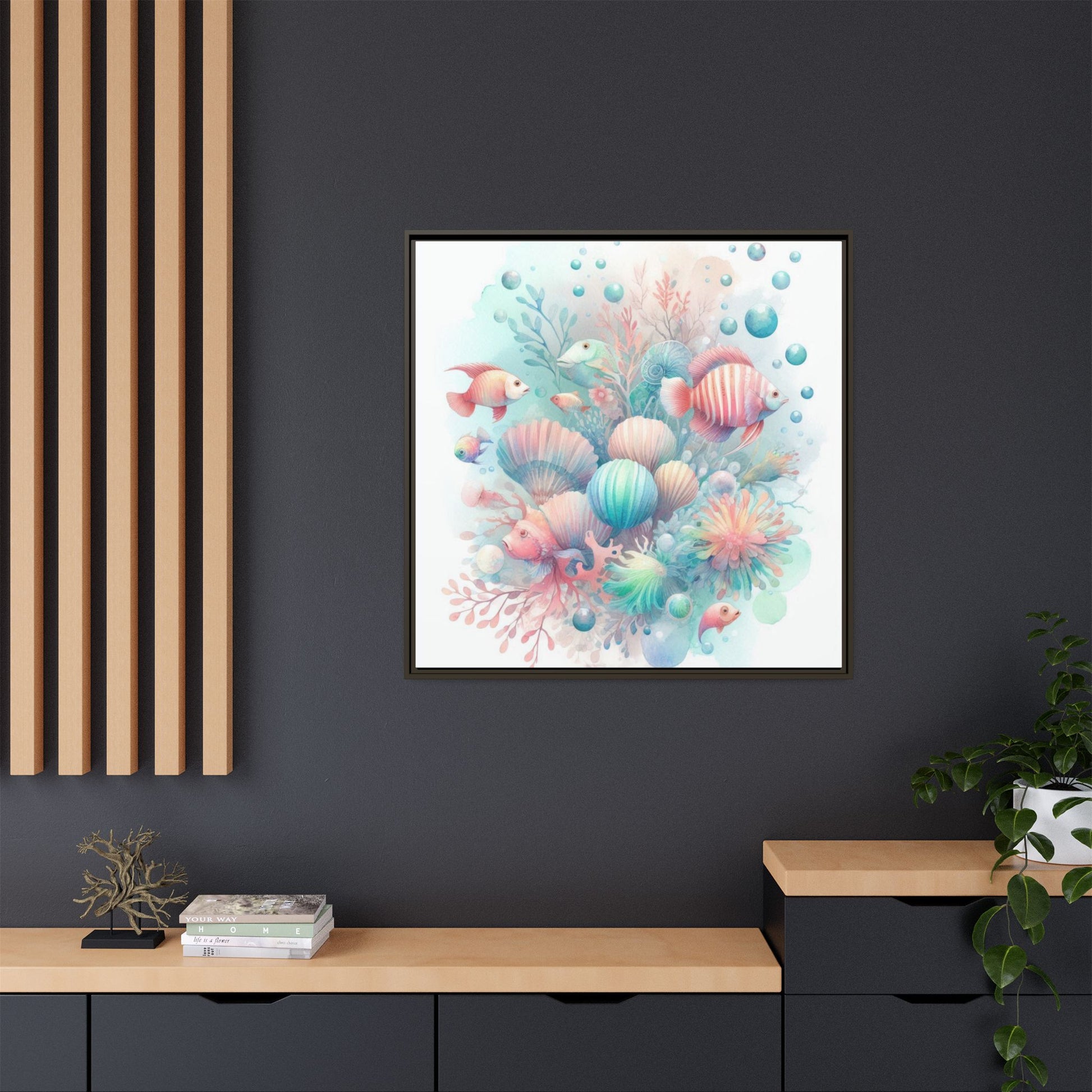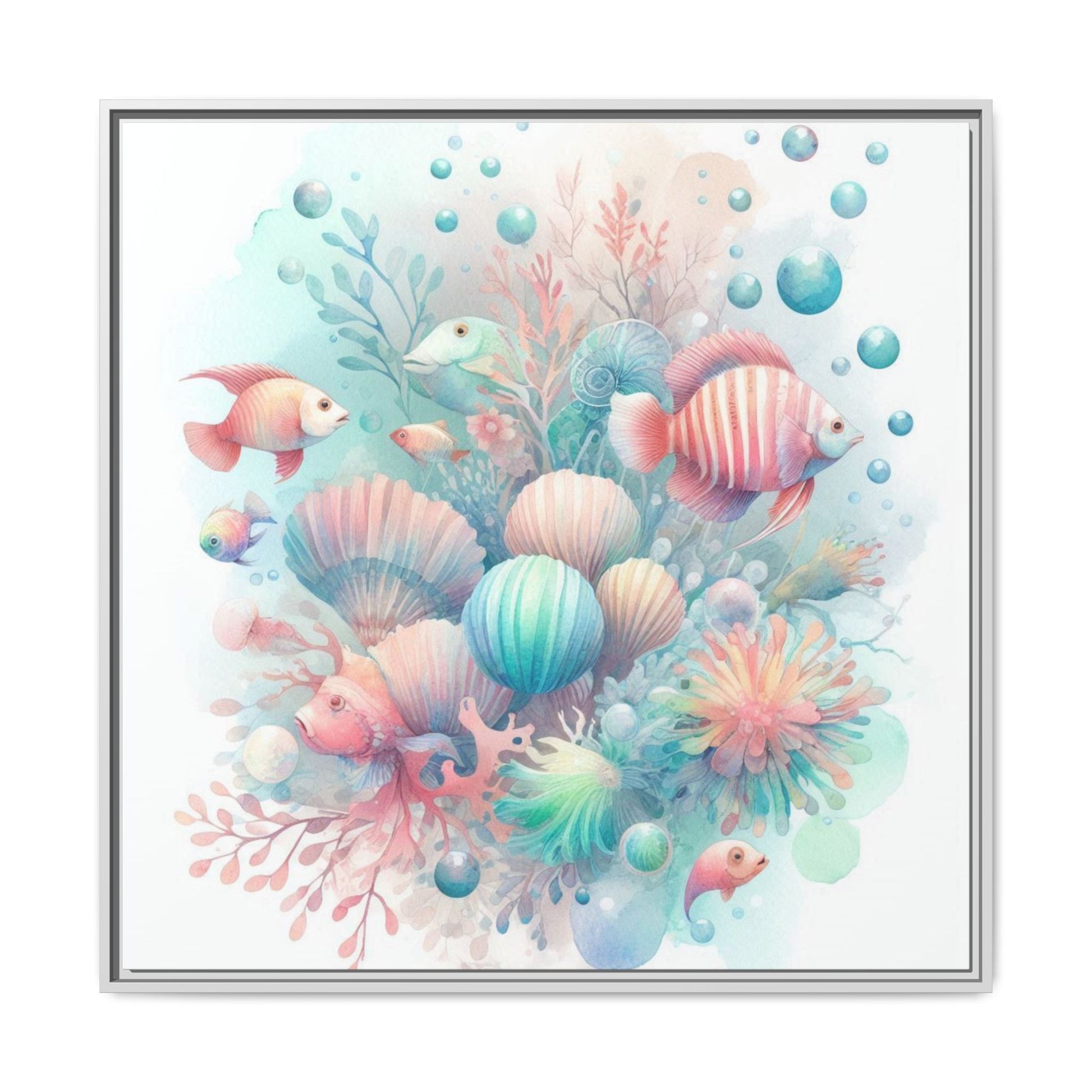 Whimsical Nursery Decor Pastel Underwater Design Unique Sweet Baby Room Framed Canvas Ocean Fish Print Unisex Baby Shower Coral Reef Gift
