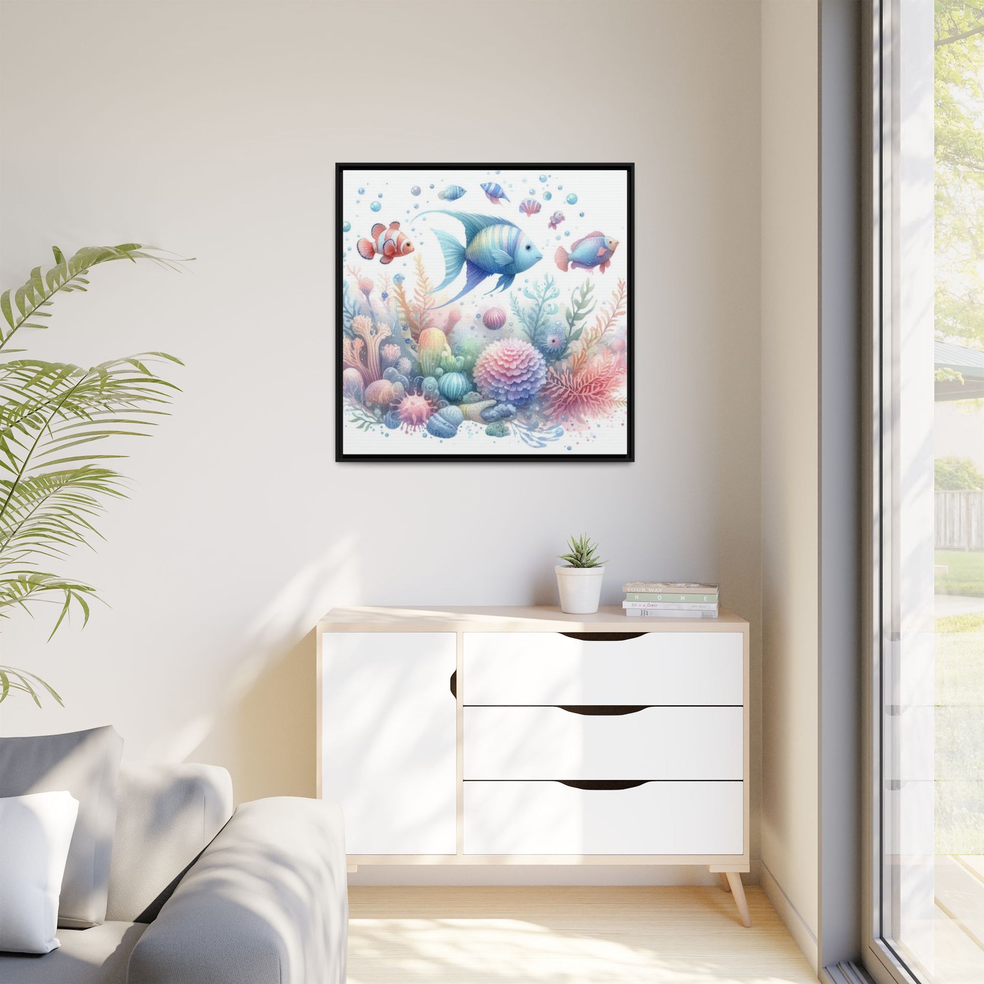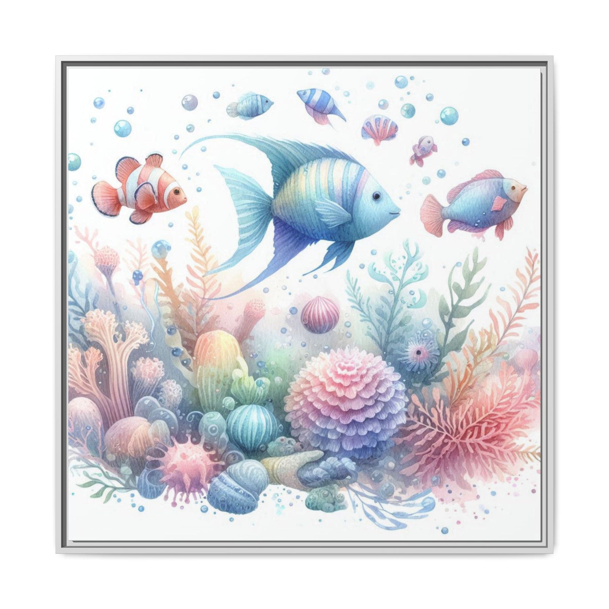 Whimsical Nursery Decor Pastel Underwater Design Unique Sweet Baby Room Framed Canvas Ocean Fish Print Unisex Baby Shower Octopus Gift