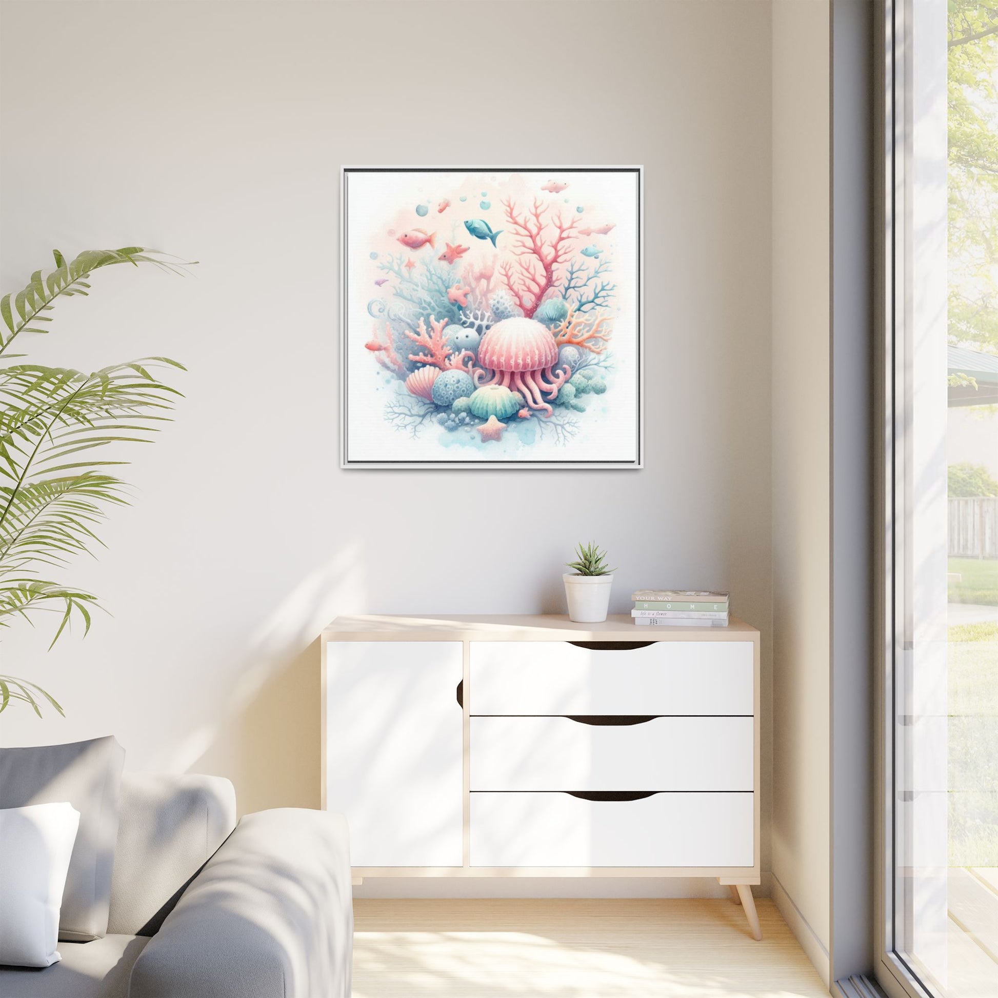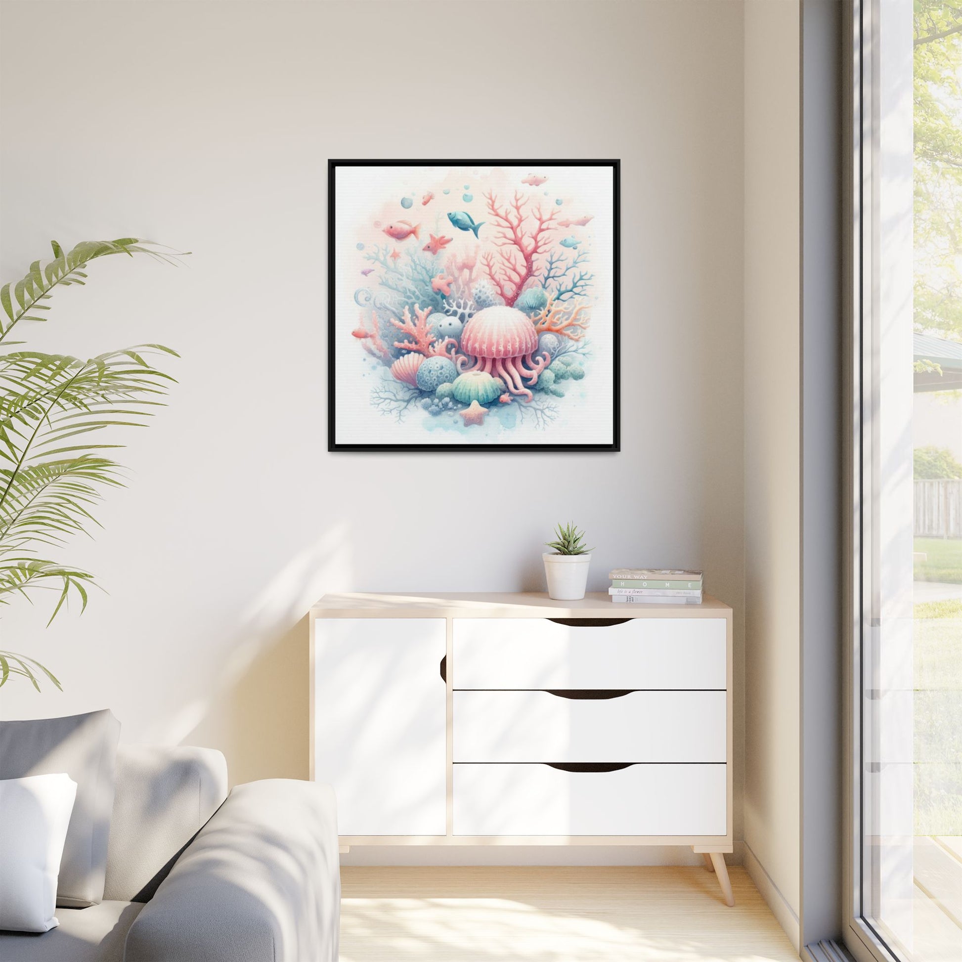 Whimsical Nursery Decor Pastel Underwater Design Unique Sweet Baby Room Framed Canvas Ocean Fish Print Unisex Baby Shower Sea Urchin Gift