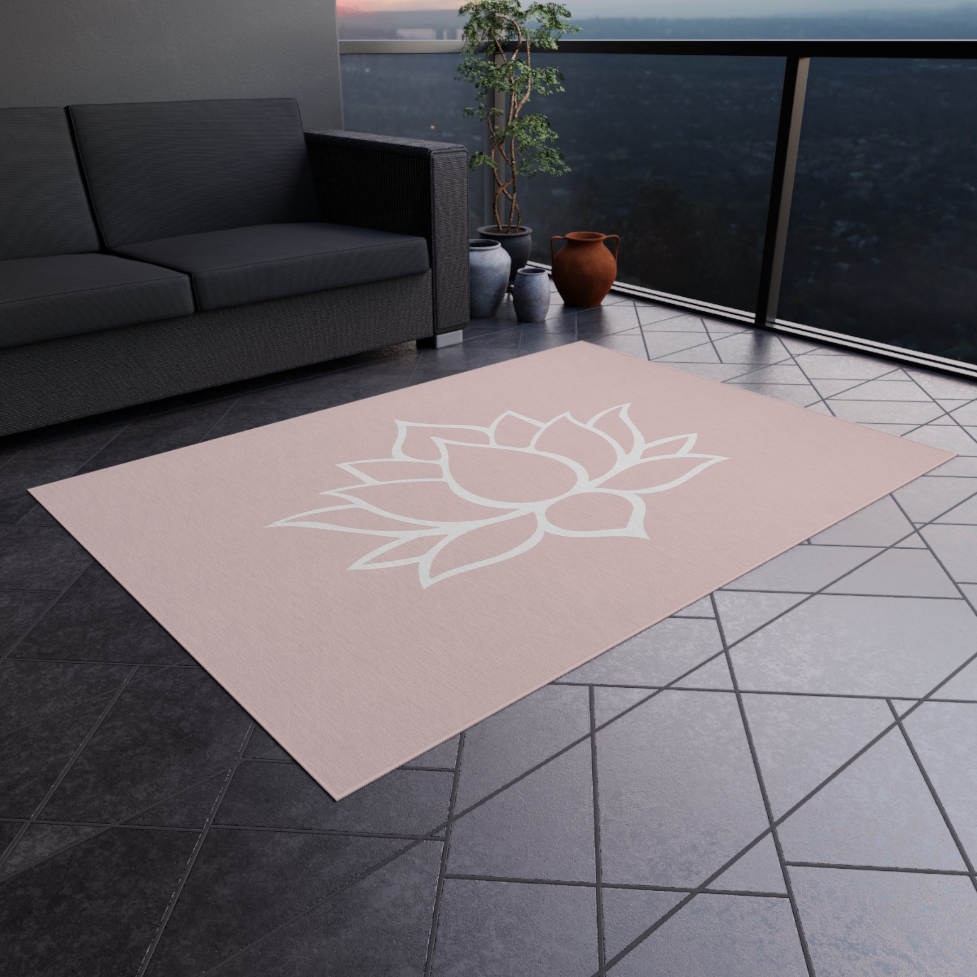 Zen Chenille Outdoor Rug with No-Skid Backing Cozy Outdoor Carpet Lotus Blossom Patio Decor Gazebo Rug Pool Area Decor Outdoor Kitchen Rug